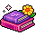 Encontrando uno de sus materiales de pintura perdidos en la plaza.